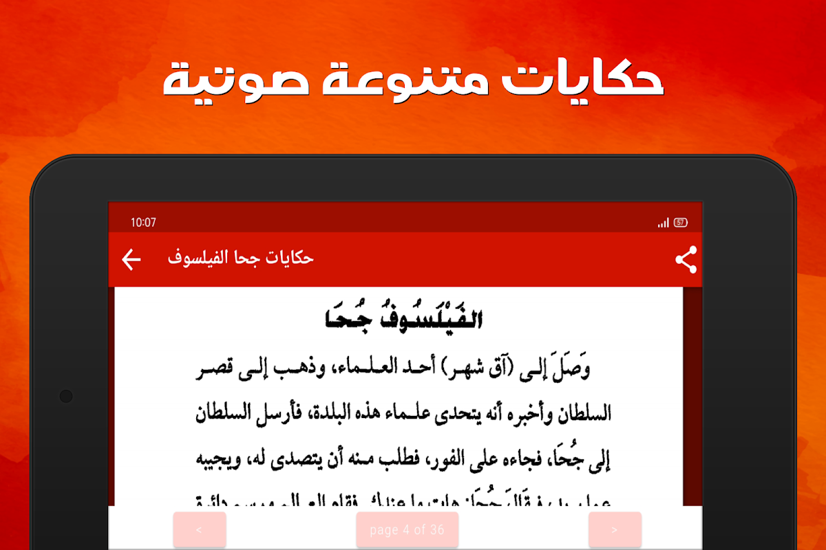 Aplikasi ini mencakup ensiklopedia berbagai cerita, lucu dan lucu, yang mencakup makna khusus dan ambiguitas, dibagi menjadi dua kategori, perpustakaan cerita dan dongeng yang ditulis dan cerita Juha, suara dan gambar tanpa jaring (hadiah Anda adalah suara dirham, Juha dan tamu yang sakit, Juha dan kata-kata orang, Juha mengatakan siapa yang menggali lubang untuk saudaranya dan jatuh ke dalamnya). , Juha melakukan kebaikan, Juha penjual sutra, Juha dan tetangga kikir, kaldu kelinci, Juha melakukan kebaikan, pakaian saya lebih penting dari Anda, yang memberi banyak dan tidak berhemat sedikit, Tuhan memberi Anda, dan Tuhan tidak akan membeli Anda, Juha dan raja, Juha dan raja, Juha memiliki lima piaster ...) dan cerita tertulis yang komprehensif Ini mencakup tiga koleksi: Tales of the Philosopher, Tales of Juha and the Donkey, dan Tales of Juha the Judge