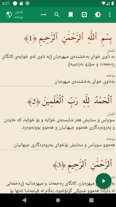 Versi lama قورئانى پیرۆز Quran Kurdish