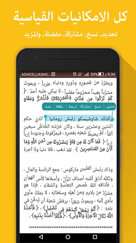 - امكانية البحث والتحديد والنسخ والمشاركة لاي محتوى.