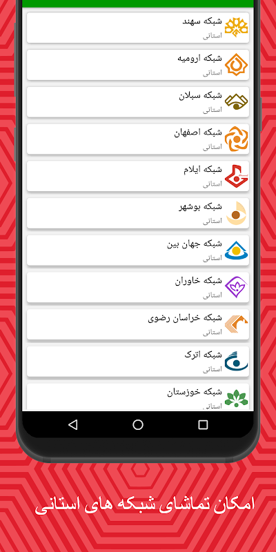شبکه یک / شبکه دو / شبکه سه / شبکه چهار / شبکه پنج / شبکه شما / شبکه افق / شبکه نسیم / شبکه نمایش / شبکه تماشا / آی فیلم / شبکه خبر/ شبکه کیش