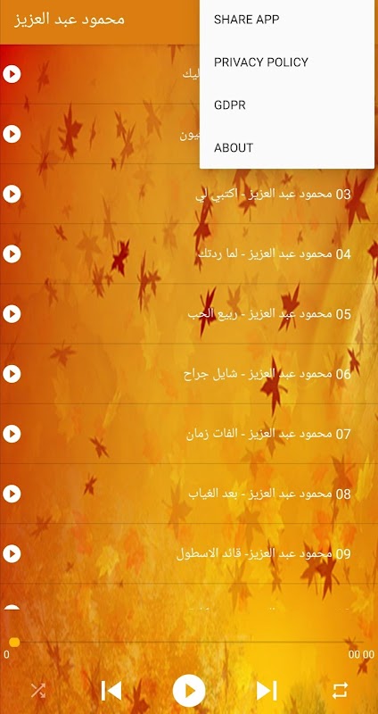 قائمة الأغاني في هدا التطبيق