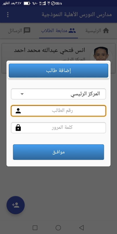 Tertarik pada inovasi dan pengembangan, dan memenuhi komitmen kami untuk menyediakan lebih dari sarana wali untuk mengikuti anak-anaknya untuk melayani dan memberikan kontribusi pada pengembangan proses pendidikan, dan pelayanan untuk orang tua siswa kita tercinta; aplikasi elektronik ini, yang memungkinkan wali mengikuti anak-anaknya pergi dari profil telepon genggamnya.