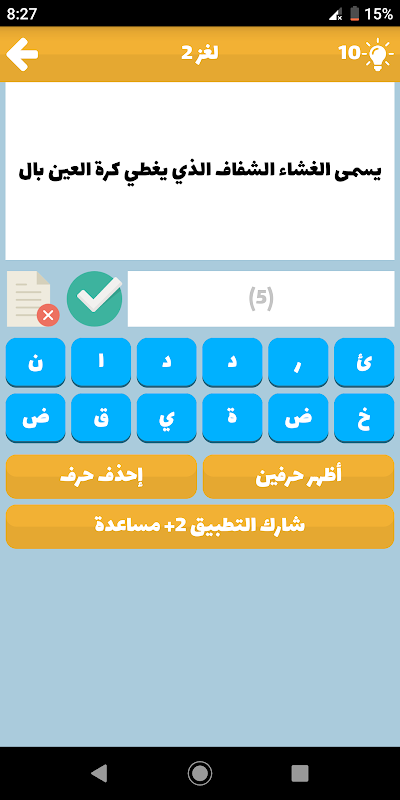 ركب الكلمات و أجب عن الألغاز و تحدى أصدقائك، في تطبيق مسابقة أسئلة و أجوبة - لعبة أسئلة ذكاء 2019 لعبة كلمات متقاطعة و معلومات عامة و ألغاز ذكاء ممتعة هي لعبة تفكير و تحدي، تجعلك تفكر جيدا و تستخدم عقلك لحل الألغاز الصعبة و لكن في نفس الوقت ممتعة.