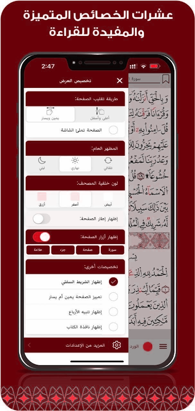 Aplikasi ini memberikan pengalaman unik bagi pembaca melalui lusinan fitur berbeda dan berguna. Aplikasi ini berisi beberapa pilihan pendidikan yang berguna untuk pembacaan dengan suara lebih dari satu pembaca. Aplikasi ini juga menyatukan buku-buku dan interpretasi paling terkenal dengan kemampuan untuk menelusuri tanpa Internet. Selain itu, aplikasi ini menyediakan kemampuan untuk melihat dua halaman, tampilan yang diperbesar, dan membaca malam hari dan banyak karakteristik khas lainnya.