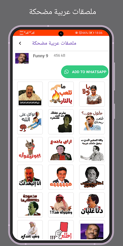 Stiker Arab lucu berisi banyak stiker dan gambar selebriti dengan tulisan kata-kata ekspresif dan lucu yang akan membuat Anda berinteraksi dengan semua teman dan orang yang Anda cintai. Stiker dan stiker Arab lucu terindah dan terbaru untuk WhatsApp untuk semua kesempatan. Tingkatkan level percakapan Anda dan kejutkan teman Anda dengan stiker WhatsApp animasi terindah, eksklusif dalam program stiker terbaik yang pernah ada.