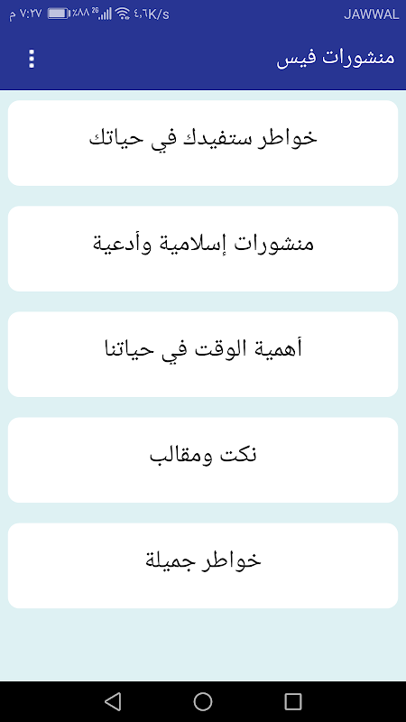 يحتوي هذا التطبيق على حالات وكلمات جميله للفيس بوك و الواتس اب