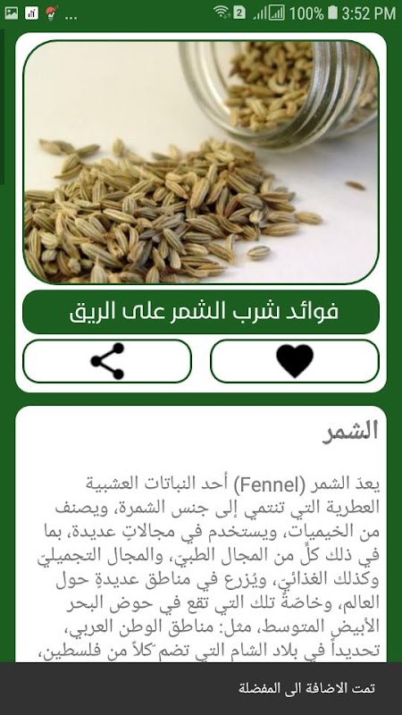 ويمكنك أيضا إضافة اي علاج او معلومة لقائمة المفضلة لديك او ازالتها لتتمكن من الرجوع الها بشكل سريع.