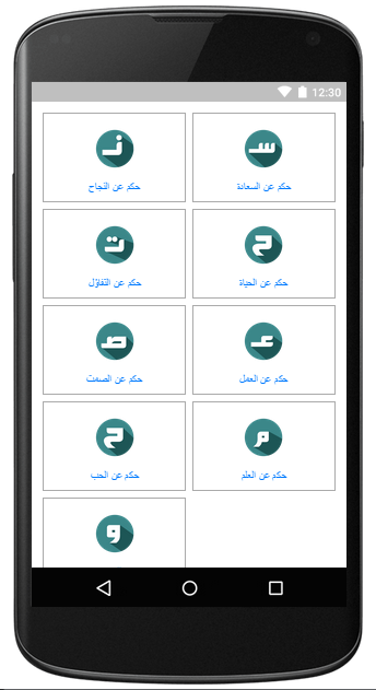 - حكم المشاهير مثل حكم واقوال الامام علي بن ابي طالب وايضا حكم ابراهيم الفقي وحكم لقمان ومحمود درويش ونجيب محفوظ وايضا حكم اروسطو وشكسبير وغيرهم من الحكماء والعظماء.
