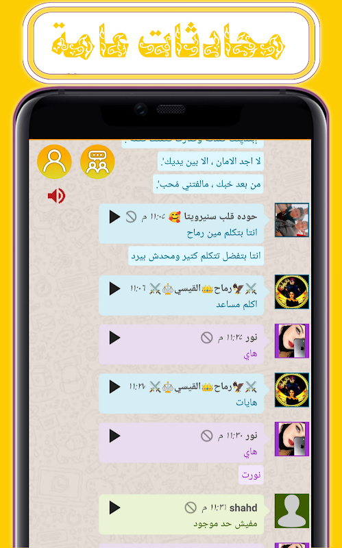 Ruang obrolan publik dan pribadi dari semua negara Arab, mengirim gambar dan video