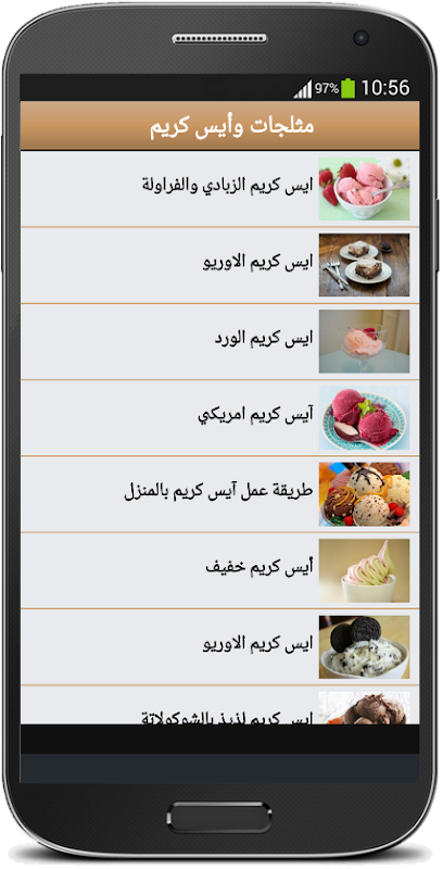 يحتوي تطبيق وصفات مثلجات و ايس كريم منزلية على العديد من الوصفات :