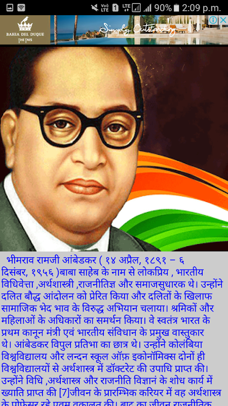 It is app based on History of Dr. Bhim Rao Ambedkar he is the Father of Constitution India.Dr. Bhimrao Ramji Ambedkar, popularly known as Babasaheb Ambedkar, was a jurist, social reformer and politician. He is also known as the Father of Indian Constitution. A well-known politician and an eminent jurist, his efforts to eradicate social evils like untouchablity and caste restrictions were remarkable. Throughout his life, he fought for the rights of the dalits and other socially backward classes. Ambedkar was appointed as India’s first Law Minister in the Cabinet of Jawaharlal Nehru. He was posthumously awarded the Bharat Ratna, India’s highest civilian honor, in 1990. Bhimrao Ambedkar was born to Bhimabai and Ramji on 14 April 1891 in Mhow Army Cantonment, Central Provinces (Madhya Pradesh). Ambedkar’s father was a Subedar in the Indian Army and after his retirement in 1894, the family moved to Satara, also in Central Provinces. Shortly after this, Bhimrao’s mother passed away. Four years later, his father remarried and the family shifted to Bombay. In 1906, 15 year old Bhimrao married Ramabai, a 9 year old girl. His father Ramji Sakpal died in Bombay, in 1912.