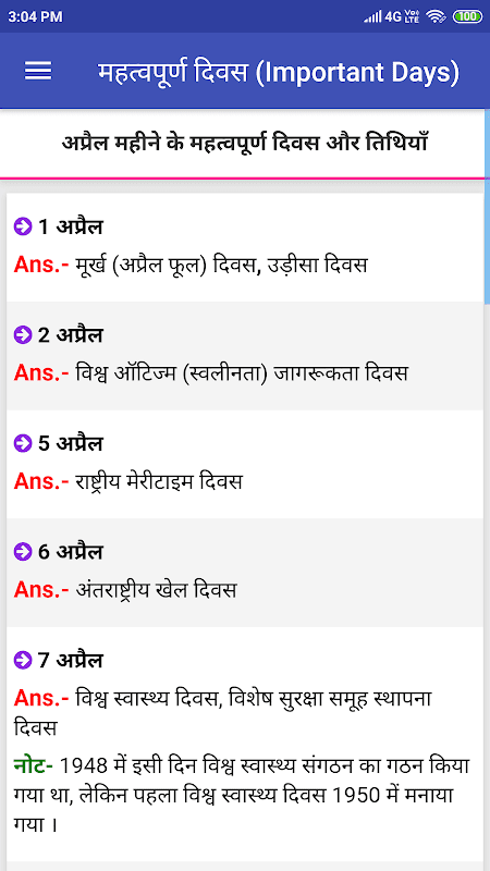 Informasi APK महत्वपूर्ण दिवस - Important Days & Dates in Hindi