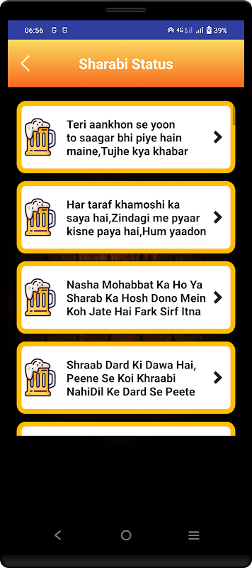 Aplikasi ini berisi status Sharabi Shayari dan Hindi Sharabi yang indah.
