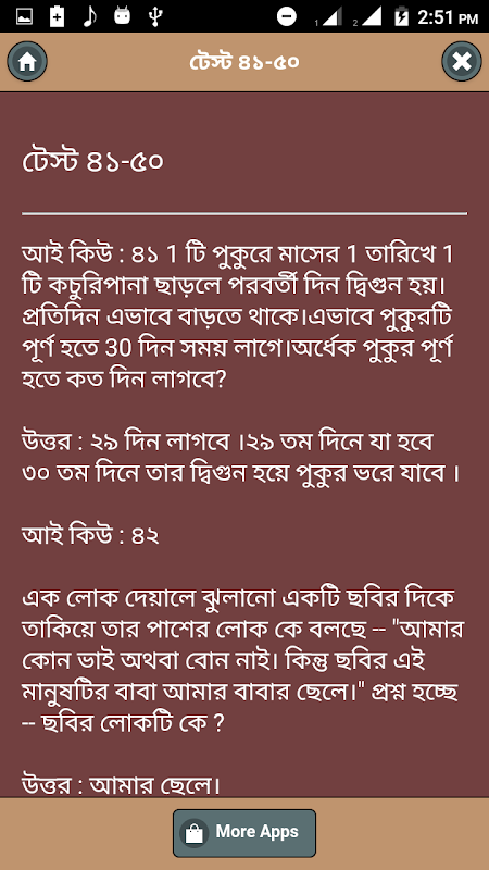 বর্তমান যুগের সাথে মানুষের সাথে চলার জন্য আপনার প্রয়োজন যুগ উপযোগী আই কিউ,আপনার আই কিউ এর অবস্থা দেখুন।যারা আই কিউ টেস্ট সম্পর্কে জানতে চান বিশেষ করে তাদের জন্য অ্যাপটি এটি খুবই প্রয়োজনীয়।