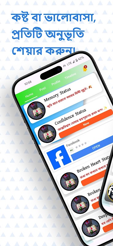 ✅ Salin & Bagikan অপশন – স্ট্যাটাস কপি করে ফেসবুক, WhatsApp-এ পোস্ট করুন