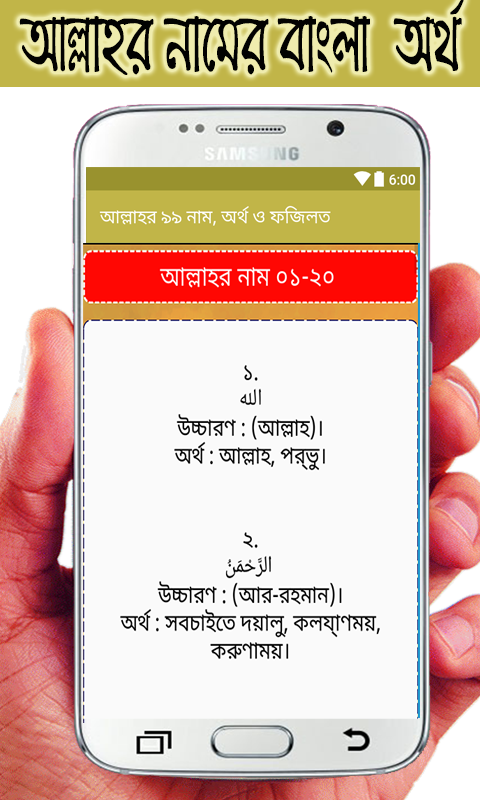 আপনারা এই অ্যাপ এর মাধ্যমে আল্লাহর 99 নামের, অর্থ ও ফজিলত সম্পর্কে জানতে পারবেন.
