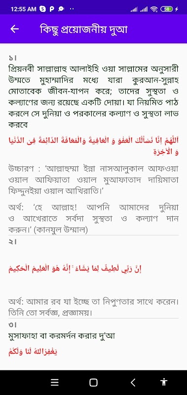 Beberapa surah penting dapat didengar, beberapa amals dan doa dapat diucapkan melalui aplikasi ini