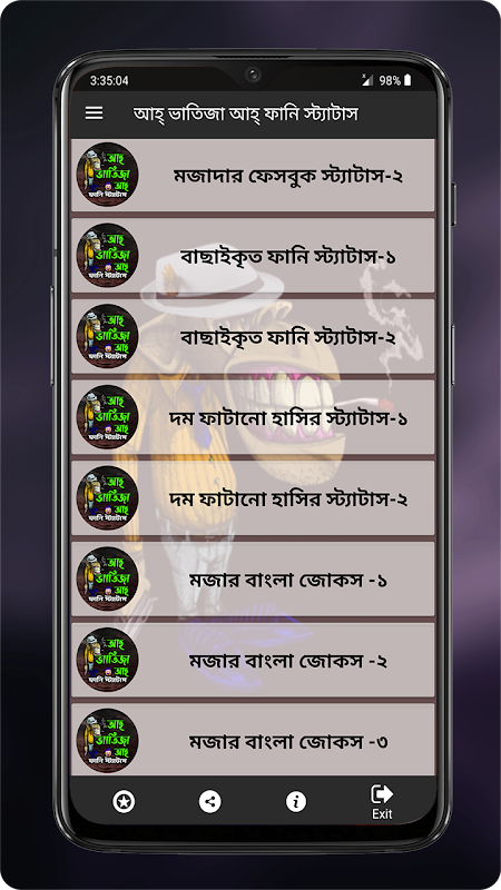 “আহ্ ভাতিজা আহ্ ফানি স্ট্যাটাস”, এই এপ্সটিতে একেবারে নতুন সব দম ফাটানো ফানি স্ট্যাটাস রয়েছে।
