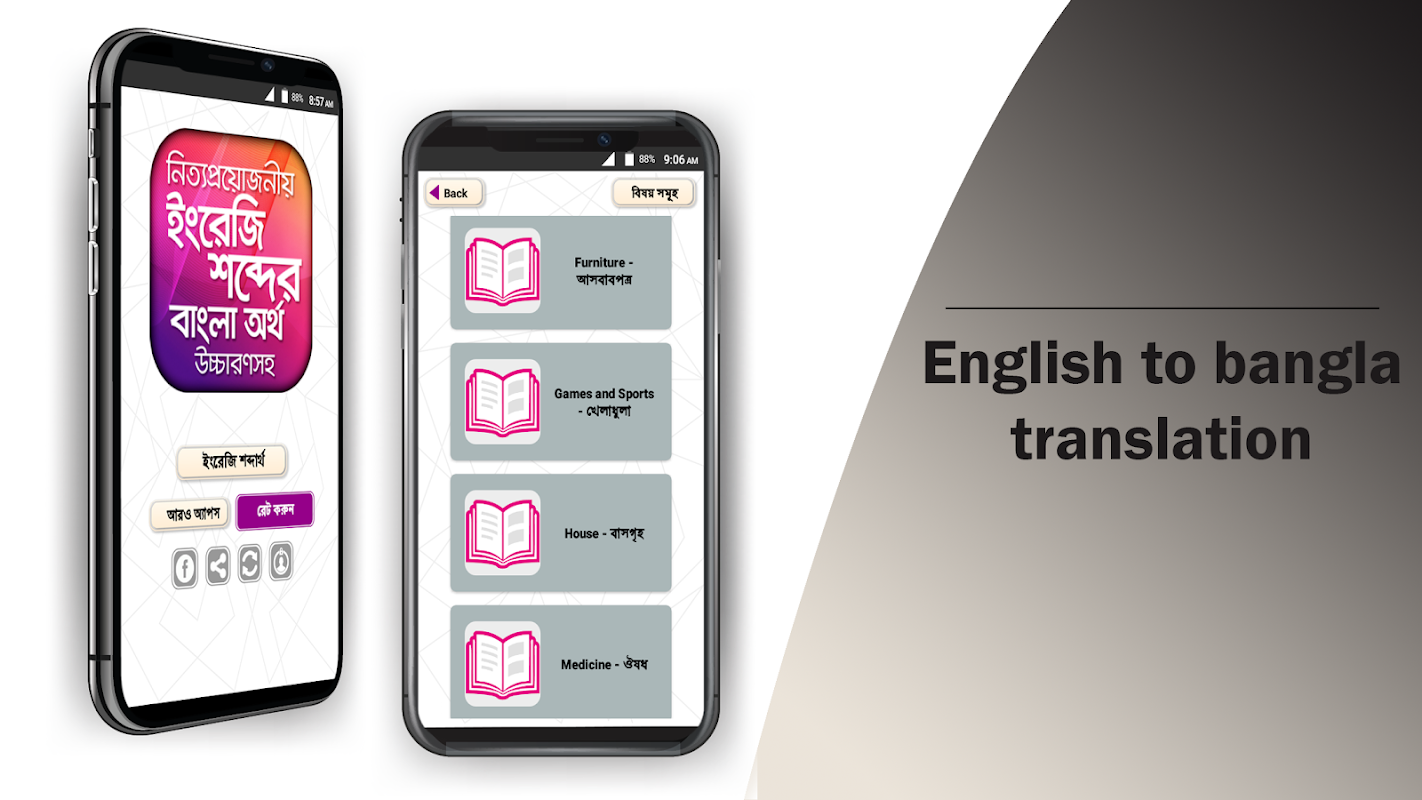 উচ্চারণসহ ইংরেজি শব্দের বাংলা অর্থ অ্যাপটি ব্যবহার করে আপনি সহজেই যেকোন ইংরেজি শব্দের বাংলা অর্থ জানতে পারবেন আর আপনার ইংরেজি ভোকাবুলারি তথা শব্দ ভাণ্ডার বাড়াতে বিশেষ সহায়তা করবে।