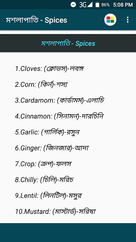 who wants to learn english word in Bangla then he see this application for word book english to bangla is a offline english to bangla vocabulary for them This type of offline english to bangla dictionary application . It also helps to translate any word into english to bangla or bangla to english. In this application we organize many words with pronunciation and bangla meaning.