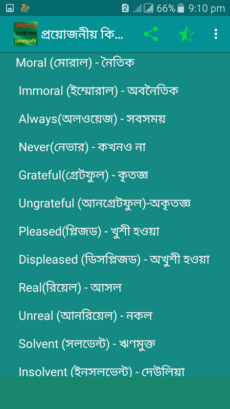 Kosakata bahasa Inggris untuk bangla membantu untuk kursus berbahasa Inggris di bangla. Mereka yang ingin belajar berbicara aplikasi kosakata bahasa Inggris sangat penting bagi mereka. Anda dapat menggunakannya Inggris untuk bangla kamus atau kamus saku.