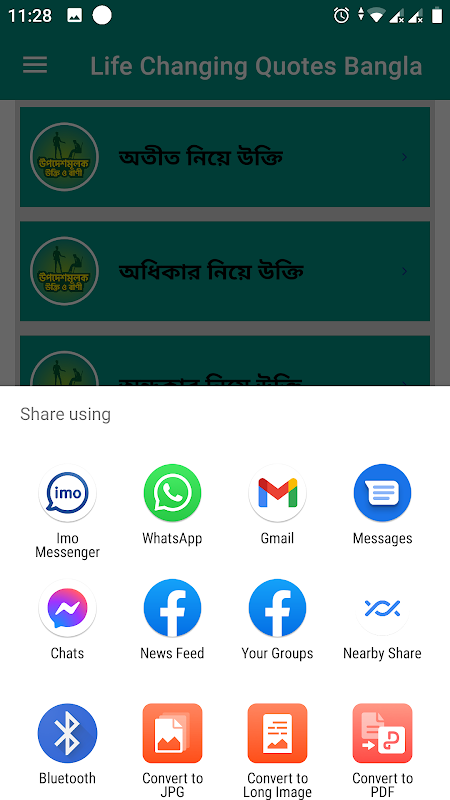 This app delivers subject wise inspirational quotes bangla and motivational quotes for bangali peoples. Some persons adoptions islamic quotes bangla, so we provide some topic on islamic motivational quotes bangla and along with some topic on love quotes bangla which is delivered romantic love quotes bangla and similarly love motivational quotes bangla.