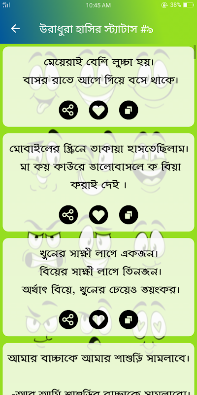 ২০২১ সালের সব নতুন নতুন ভাইরাল হাসির ও মজার স্ট্যাটাস পোষ্ট নিয়ে আমাদের এই নতুন Aplikasi "উরাধুরা হাসির স্ট্যাটাস "- টি। আর এই স্ট্যাটাস গুলি বাছাইকৃত এবং সুন্দর করে সাজানো রয়েছে।