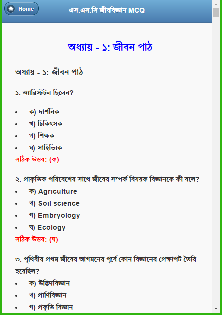এসএসসি জীববিজ্ঞান নৈর্ব্যক্তিক 1.0