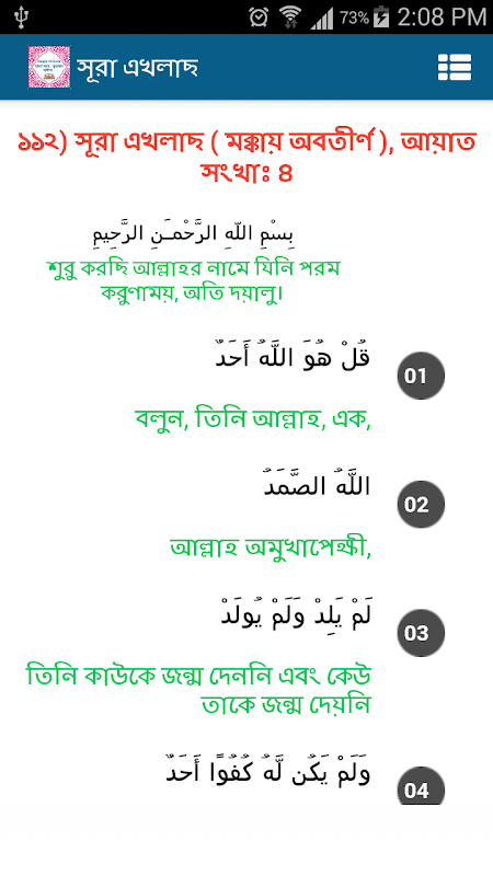 Lengkap Kudus Qur`an semua nama surah dengan terjemahan bangla.