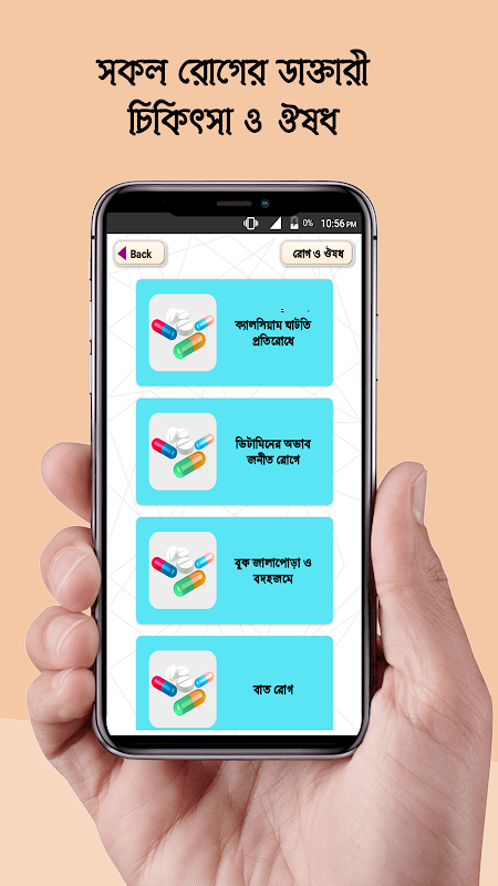 Aplikasi ini adalah aplikasi jenis kesehatan dan kebugaran. Its menyediakan penyakit dan pengobatan obat secara offline dan Kamus Pengobatan Penyakit di bangla. kita membutuhkan pertolongan dan perawatan dokter. ini bukan panduan dan perawatan lengkap.