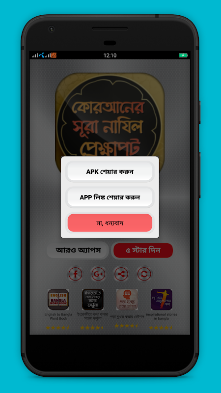 আমাদের ”কোরআনের সূরা নাযিল প্রেক্ষাপট“ এ্যাপটি খুব ভাল একটি মাধ্যম হতে পারে ইসলাম সম্পর্কে জানার। তাই দেরি না করে এখই এ্যাপটি আপনার মোবাইলে নামিয়ে নিন। এবং বন্ধু এবং প্রিয় মানুষদের সাথে শেয়ার করুন। আর নুতন ভাল ভাল এ্যাপ তৈরীতে উৎসাহ দেয়ার জন্য 5 স্টার দিয়ে রেট করুন।