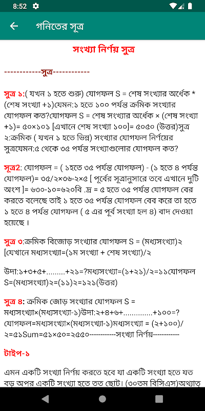গণিত শিক্ষার জন্য যা যা সূত্র দরকার তা তা সব কিছৃ রয়েছে এই অ্যাপটিতে