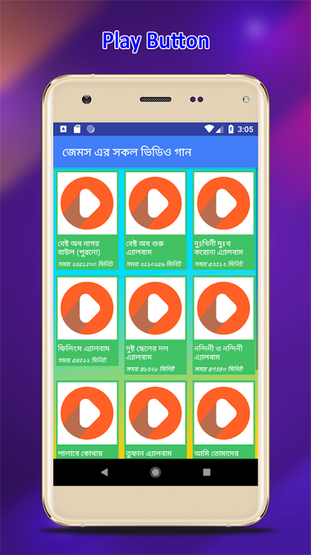আপনি যদি জেমস এর সকল ভিডিও গান একত্রে উপভোগ করার জন্য অ্যাপ খুঁজে থাকেন, তাহলে নিঃসন্দেহে জেমস এর সকল গানের ভিডিও অ্যাপটি এখনই ডাউনলোড করতে পারেন :)
