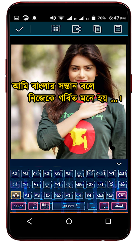 Aplikasi penulisan Bangla untuk Menulis Teks Bangla pada Foto dengan menggunakan keyboard bangla.