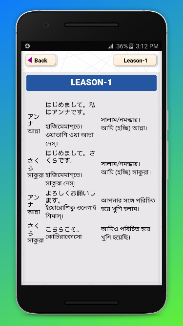 উচ্চ শিক্ষার জন্য বা কাজের জন্য জাপান বর্তমানে অন্যতম একটি দেশ। জাপান সরকারও এই সব ব্যপারে যথেষ্ট আগ্রহ প্রকাশ করছে। তাই অনেকেই আজকাল জাপানি ভাষা শিক্ষা কে প্রাধান্য দিচ্ছে। কিন্তু যথেষ্ট পরিমাণ প্রাতিষ্ঠানিক উদ্যোগের অভাবে জাপানি ভাষা শিক্ষা নেয়া দুরুহ হয়ে পরে। তাই আপনি এখন চাইলেই আমাদের অ্যাপ থেকে শিখে নিতে পারবেন জাপানি ভাষা বাংলায়। আর বাজারে গিয়ে সস্তা জাপানি ভাষা শিখুন বই কিনতে হবে না বা আপনাকে আর কষ্ট করে খোঁজ করতেও হবে না কোথায় জাপানি ভাষা শিক্ষা বাংলায় শিখানো হয়।