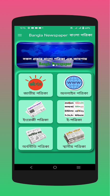 Surat Kabar Harian: Di aplikasi Surat Kabar Bangla Anda akan mengumpulkan semua Surat Kabar Bangla. Melalui ini Anda akan mendapatkan berita tentang Bangladesh dengan sangat mudah. Anda juga dapat menyimpan majalah favorit Anda sebagai favorit. Semua majalah dibagi ke dalam kategori berikut: