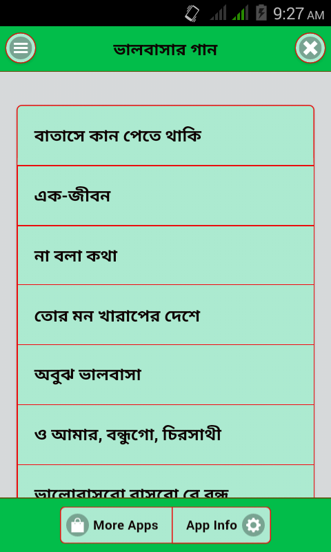 গানের সাথে মানুষের সম্পর্ক মনের এবং প্রাণের। মানুষ তাঁর সুখ, দুঃখ, আনন্দ বেদনা সবই প্রকাশ করে গানের মাধ্যমে। ভালোবাসা মানুষের জীবনের অন্যতম অনুভুতির না যা সুধু একজন সত্যিকারের প্রেমিকই বুঝতে পারে। ভালোবাসার গান অ্যাপ এ আমরা এমন কিছু আবেগময় গা দিয়েছি যা শুনলে আপনি ভালোবাসার এক অন্য জগতে চলে যাবেন। আমরা সকলেই জানি যে মানুষ তাঁর সকল আবেগ এবং অনুভূতি গানের মাধ্যমে প্রকাশ করে থাকে আর এই প্রেমের গান এবং ভাবের গানগুলো আপনার ভালোবাসার সাথে এক নতুন মাত্রা যোগ করে দিবে। গান ছাড়া ভালোবাসার অনুভূতি প্রকাশ করা এক প্রকার অসম্বব তাই দেশের সকল প্রেমিকের কথা চিন্তা করেই আমরা এই ভালোবাসার গান সঙ্কলন তৈরি করেছি।