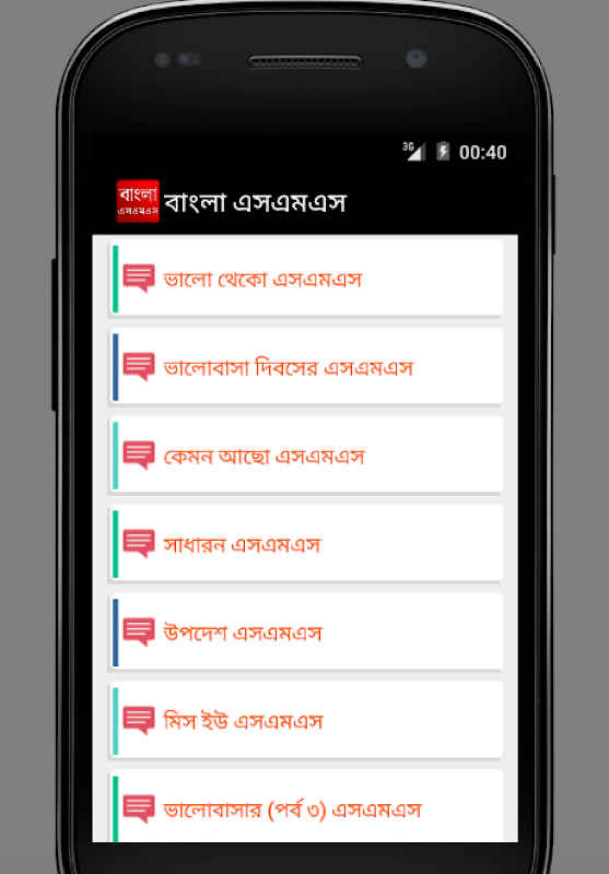 দেশের সেরা '' বাংলা এসএমএস '' ( Bangla SMS ) অ্যাপ এর পর এবার নিয়ে এলাম আরো একটি এসএমএস। সংগ্রিহীত ও বাচাইকৃত বাংলা এসএমএস ( Bangla SMS ) এর কালেকশন তৈরী করেছি আমরা। এগুলো আপনি ফেসবুক স্ট্যাটাসও দিতে পারবেন কপি বাটনে ক্লিক করে, তারপর ফেসবুকে পেস্ট করলে। এক ক্লিকেই শেয়ার করতে পারবেন, এসএমএস পাঠাতে পারবেন।