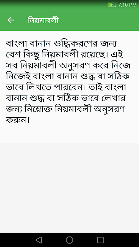 বাংলা বানান শুদ্ধিকরণের নিয়মাবলী জানার জন্য অ্যাপটি ভাল করে পড়ুন.