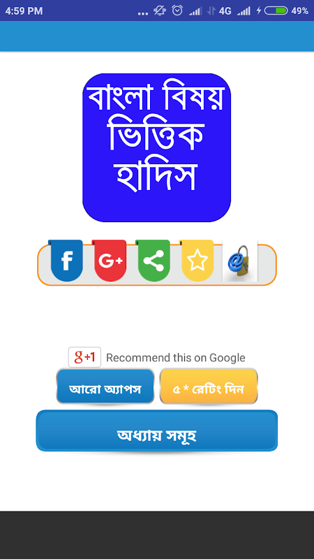 Hadis bangla app contains the content of hadith bangla. In this hadis book in bangla we put some subject wise sahih bangla hadis. If you want to know real hadish then you might need to read bukhari sharif hadith bangla and others islamic hadis book in bangla. Also you can learn from bangla hadith apps all. If you are not a bengali people the you can read hadith bukhari and muslim in english. It will helps you to understand what is wrong and what is right.