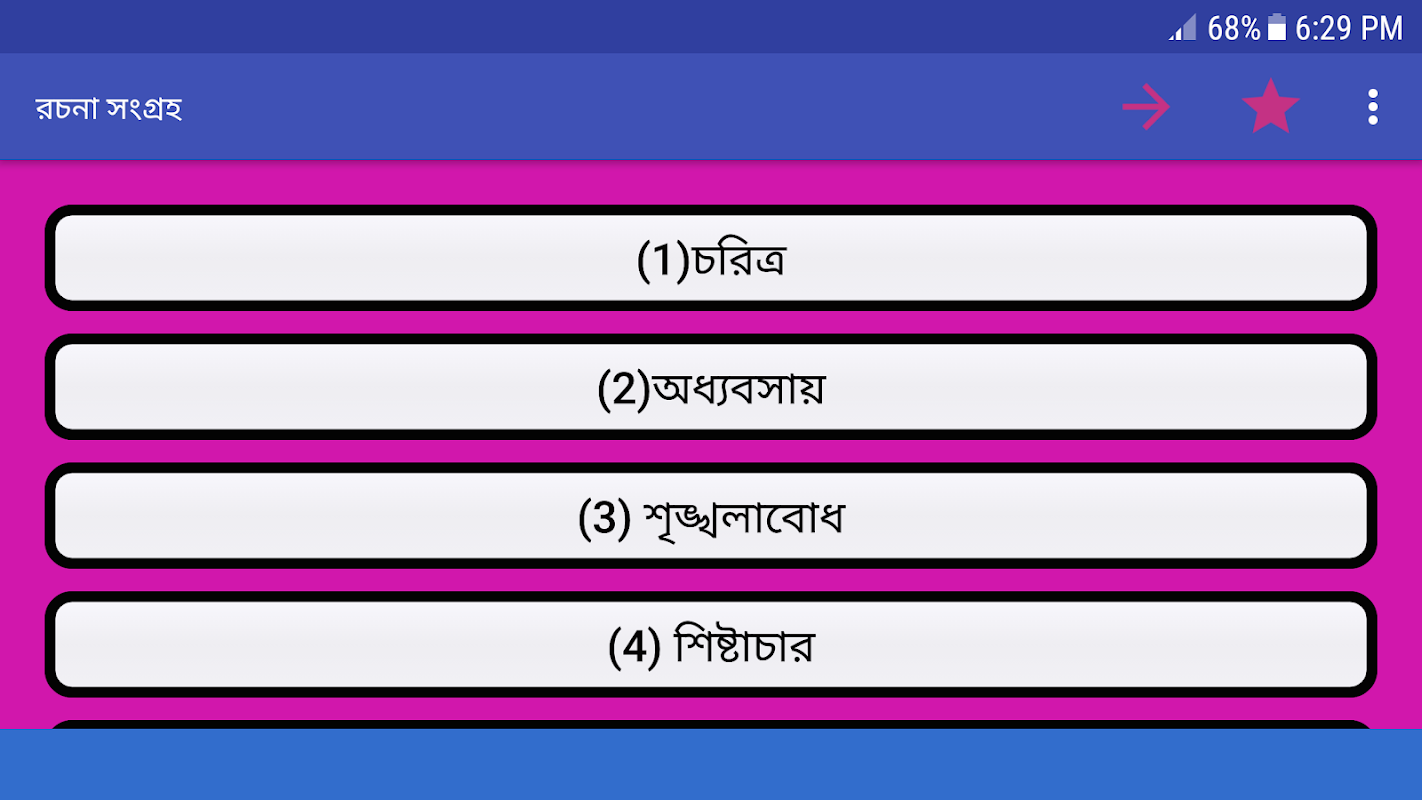 আমাদের অ্যাপসটিতে আপনি বাংলা রচনার সংগ্রহ পাবেন। যা অত্যন্ত ভালো একটি অ্যাপস।