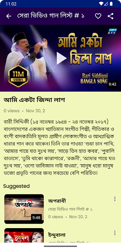 - Fitur daftar lagu Lagu Bengali Bari Siddiqui