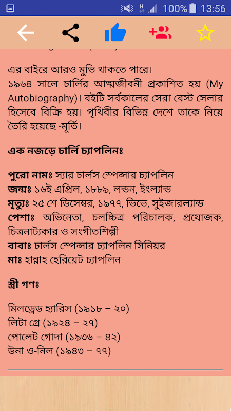 শ্রেষ্ঠ মনীষীদের জীবনী একটি বিখ্যাত বাংলা অ্যাপ। এই বিখ্যাত মনীষীদের জীবনী অ্যাপ থেকে জানতে পারবেন পারবেন সর্বকালের বিখ্যাত ১০০ ১০০ মনীষীর জীবনী ও ইতিহাস। পৃথিবীর ইতিহাসে বিভিন্ন মনীষীদের জীবনী বিস্তারিত পাওয়া খুবই কঠিন। মনিষীদের মধ্যে রয়েছে বিভিন্ন ধর্মানুসারী ও মুসলিম মনীষীদের জীবনী। হাজারও ব্যাকতির মাঝে শত মনীষীর জীবনী একটি কালজয়ী কালজয়ী বই বা। আশাকরি আপনাদের আনন্দ দানে খুবই কার্যকরী হবে এই এই ১০০ মনীষীর জীবনী নামক অ্যাপটি। আমাদের এই ১০০ বিখ্যাত মনীষীর জীবনী অ্যাপটি ভাল ভাল লাগলে সকলের শেয়ার শেয়ার আর রেটিং রেটিং দিয়ে দিয়ে ১০০ বিখ্যাত মনীষীদের মনীষীদের