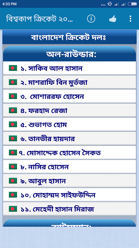 == >> খেলোয়াড় তালিকা