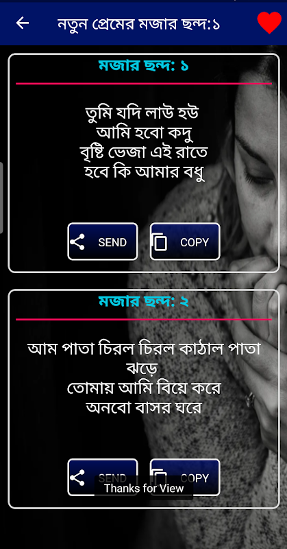 আশা করি আপনাদের অ্যাপসটি পড়ে অনেক ভালো লাগবে । আপনার মনের কষ্ট গুলো দূর করার জন্য অ্যাপসটি ভালো কাজ করবে ।