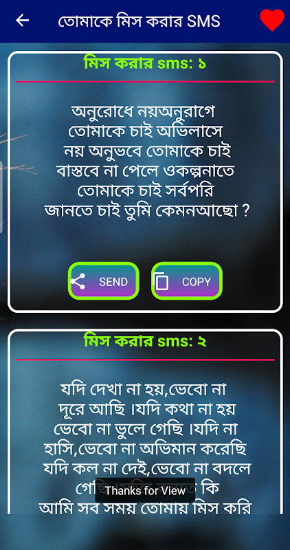 এই অ্যাপসটিতে যে সব এস.এম.এস আছে তা অপনি সবার সাথে শেয়ার করতে পারবেন ।
