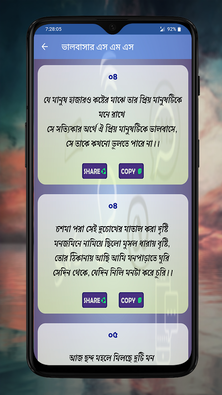 আর আপনি সহজেই এসএমএস ও স্ট্যাটাস গুলি কপি এবং শেয়ারর করতে পারবেন। সকল ক্যাটাগরি আলাদা আলাদা ভাগ করে দেওয়া হয়েছে, যাতে করে আপনার বুঝতে সুবিধা হয়ে।
