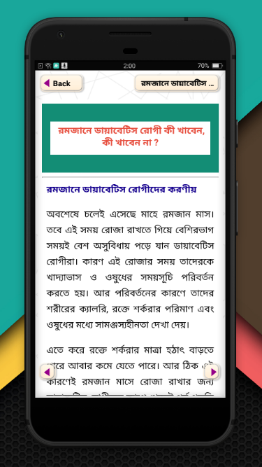 রমজানে সেহরি ও ইফতারে স্বাস্থ্যসম্মত খাবারের মেনু ও রোজায় সতর্কতা এবং সুস্থ থাকার কিছু প্রয়োজনীয় টিপস দিয়ে অ্যাপটিকে সাজানো হয়েছে। রমজান মাস ইসলাম ধর্মাবলম্বীদের জন্য গুরুত্বপূর্ণ মাস। এই মাসে বছরের অন্যান্য সময়ের তুলনায় খাদ্যাভ্যাসে বিরাট পরিবর্তন দেখা যায়। যদি এই সময়ে পুষ্টিকর ও স্বাস্থ্যসম্মত আহার করা না হয়, তবে এক মাস রোজা রাখা কষ্টকর হয়ে পড়ে।