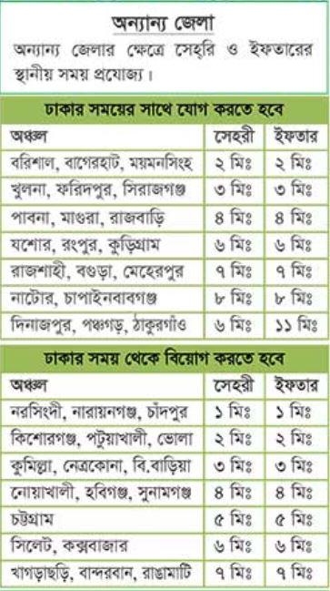 রমজান ২০১৯ ক্যালেন্ডার -Ramadan kalender 2019 BD, Tabel waktu, dijadwalkan