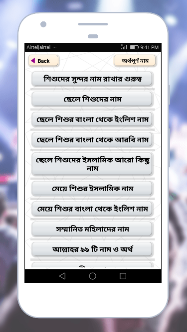If the name is the word of the Arabic or the Quran, then it will be Islamic. In the Qur'an, there is mention of the worst infidel and the holy name of the world. That's why this app can help you in giving beautiful Bengali name to Muslim boys and children.The name influences many other people's personality and character. It can be hard to believe that the person's name is in harmony with his personality and character. People with bad names are bad. All children who are proud are full of gumption.It is important to keep a beautiful and meaningful name in the religion of Islam. Our beloved Prophet (peace and blessings of Allaah be upon him) used to be pleased to hear some good name and hoped to have a similarity with the name.So for the name of your boy child and girl child at first you must be know the bangla meaning of islamik word . Be good for your child .